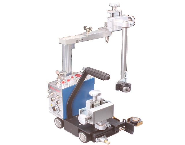 HK-5B-II型小車是適用于間斷或者連續(xù)的水平角焊結(jié)構(gòu)的雙面焊接自動裝置。焊接/非焊接區(qū)間的實際距離顯示屏上,用扳動開關(guān)的上下調(diào)節(jié),設(shè)定焊接與非焊接的距離,焊接與非焊接的距離是用電機(jī)與控制器控制,尺寸的精密度高,運行速度均勻,可實現(xiàn)精密焊接。非焊接狀態(tài)下的小車行走速度為最大值(1900mm./min)。手柄為磁控式,移動此手柄可以部分的減少磁力,便于清理鐵質(zhì)垃圾和移動小車。設(shè)有收弧裝置,收弧時間調(diào)節(jié)范圍在0-7 S。可以向左右兩方向焊接;小車兩端安裝有感應(yīng)停止開關(guān),焊接結(jié)束后小車可以自動停止,便于一個工人同時操縱多臺設(shè)備。安裝有永久磁鐵,避免小車脫離焊接線的現(xiàn)象。焊槍支架長度和高度可以根據(jù)工件形狀進(jìn)行調(diào)節(jié),使用方便體積小、重量輕,移動和安裝都很方便。