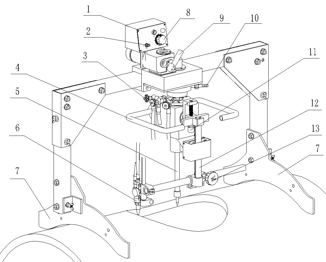 松開離合器,轉(zhuǎn)動(dòng)該把手,能快速定位割炬。 |