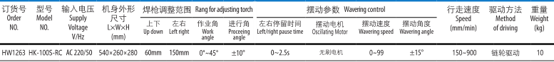 該機(jī)具有擺動(dòng)功能,有不同規(guī)格的焊道方式可供選擇,以獲得最佳的焊接效果。擺動(dòng)速度,擺動(dòng)角度,中心偏移位置和左右停留時(shí)間均可方便的調(diào)整,數(shù)碼管顯示各種調(diào)整數(shù)據(jù)。較寬的軌道讓整臺(tái)機(jī)器的重心更穩(wěn)定,軌道下裝有帶開(kāi)關(guān)的永磁磁鐵,安裝移動(dòng)更方便。驅(qū)動(dòng)部分安裝了手動(dòng)離合裝置,方便機(jī)器在軌道上快速定位,導(dǎo)輪也配有離合裝置,可以很方便的進(jìn)行小車與導(dǎo)軌之間安裝與拆卸。可以進(jìn)行垂直角焊和水平角焊,適用于加強(qiáng)件等的交叉部位的焊接。焊接不銹鋼或鋁材,可選用真空吸盤(pán)導(dǎo)軌。無(wú)線遙控操作更加省心省力,注:標(biāo)配二根長(zhǎng)度為2米的柔性導(dǎo)軌。