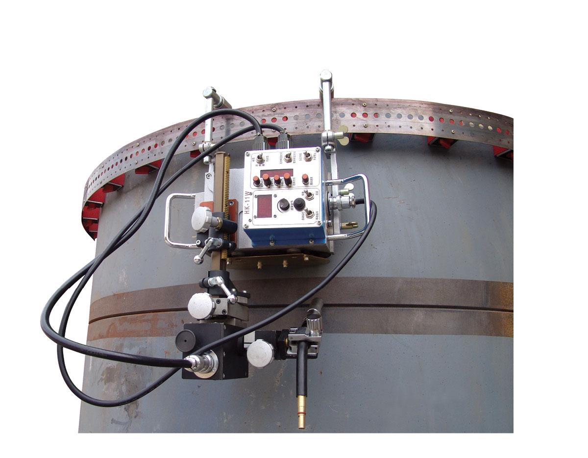HK-8SS-G 小車的焊接位置在小車的中部。用于一般角焊,特別是長角焊縫的焊接。注意:由于焊接小車向氣保焊機是常通信號,且焊接不可避免地留有殘端,故設(shè)置和焊接時焊機的自?;芈烽_關(guān)必須關(guān)閉……OFF。如果設(shè)置成開(ON),則焊接小車停止行走,電弧卻不會熄滅。小車前、后方向行走都可以進行焊接。此小車體積小、重量輕,在不同的條件下,它易于移動和安裝。小車采用四輪驅(qū)動,行走具有很高的穩(wěn)定性。小車調(diào)到自動控制狀態(tài),焊接開始。減少操作人員, 一個工人可以同時操作多臺小車進行焊接。沒有經(jīng)過培訓(xùn)的工人也可以進行焊接。由于設(shè)備的小型化和輕重量以及簡單的自動焊接操作功能,使用本機可以使一個沒有經(jīng)過培訓(xùn)的工人比技術(shù)工人使用普通焊接器具做出更好的焊接工作。小車裝有焊槍固定架,使焊槍在焊接的時候更加平穩(wěn),提高焊接質(zhì)量。一體化機身,輪軸加裝硅膠密封墊圈,小車內(nèi)部防塵效果非常好。小車采用銅齒輪傳動,有效的防止系統(tǒng)被磁化。