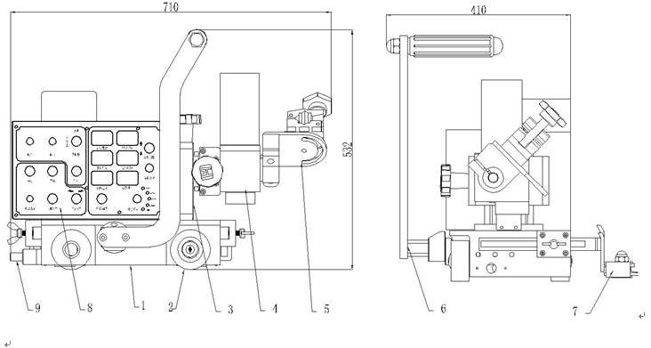 8)感應停止開關:焊接到工件末端時被觸動后小車自動停止工作。