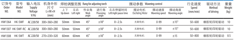 HK-5WF擺動式焊接小車是自動裝置,一次焊接可以獲得較寬的焊縫。擺動速度,擺動角度,中心偏移位置和左右停留的時(shí)間均可調(diào)整。適合各種不同規(guī)格的焊道。手柄為磁控式,移動此手柄可以部分的減少磁力,便于清理鐵質(zhì)垃圾和移動小車。小車安裝有感應(yīng)停止開關(guān),焊接結(jié)束后小車可以自動停止,便于一個工人同事操縱多臺設(shè)備。安裝有永久磁鐵與平面導(dǎo)軌,避免小車脫離焊接線的現(xiàn)象。